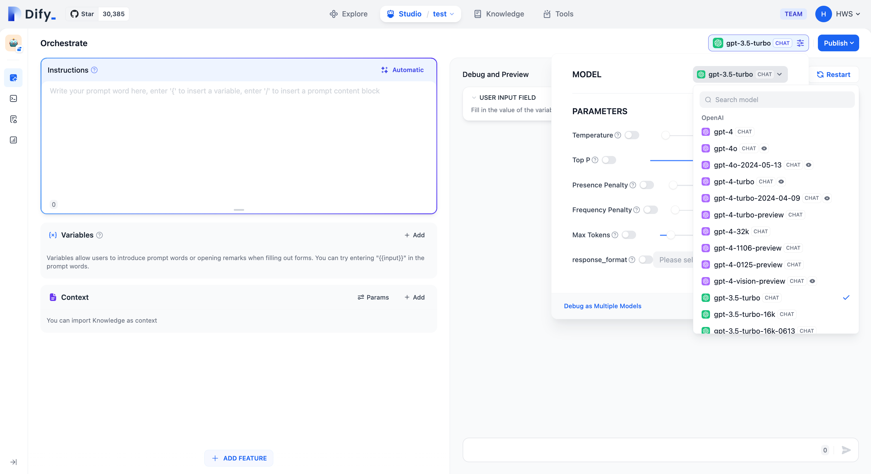 接入自有模型的供应商后,Dify 会自动接入该供应商下的所有模型。
