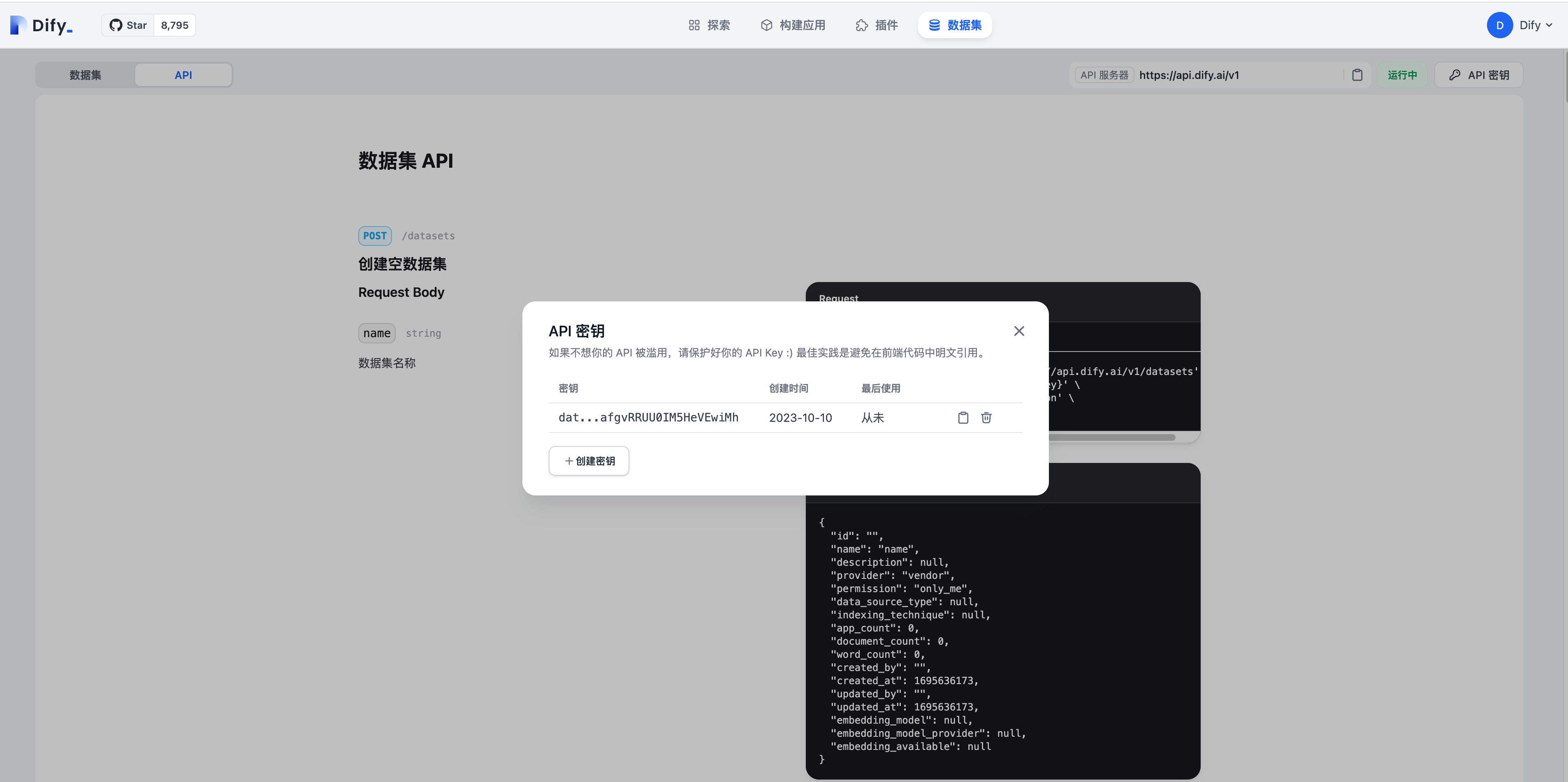 curl --location --request POST 'https://api.dify.ai/v1/datasets' \