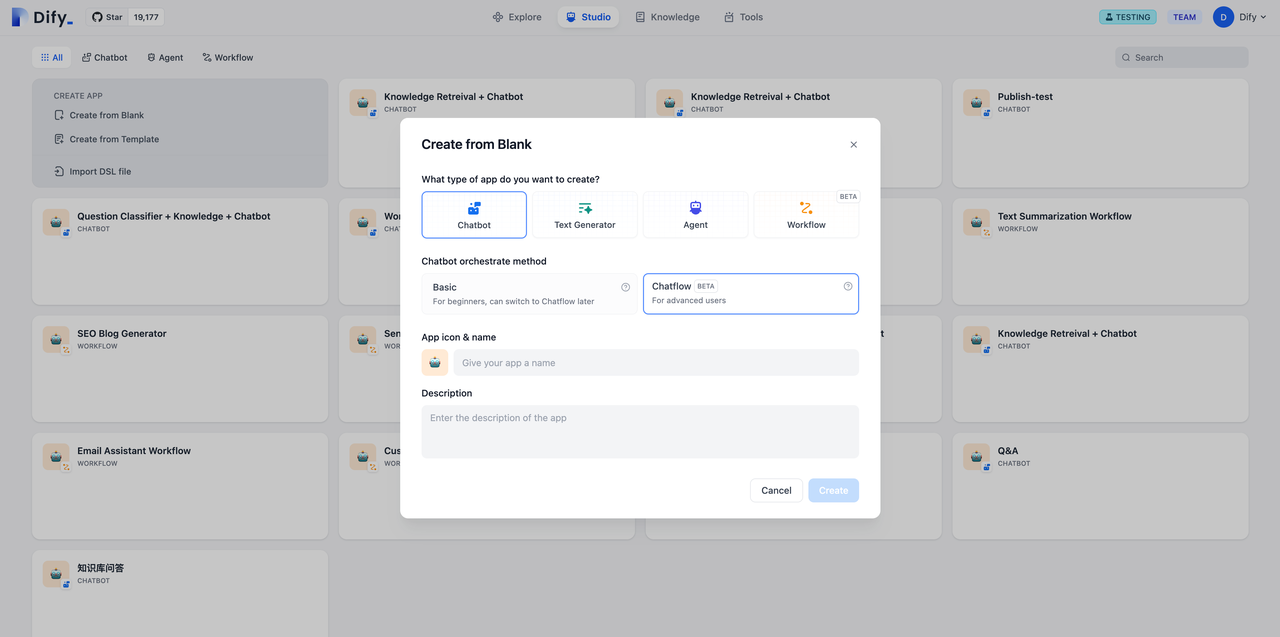 • Chatflow: Targets conversational scenarios and represents an advanced orchestration mode for Chatbot application types.