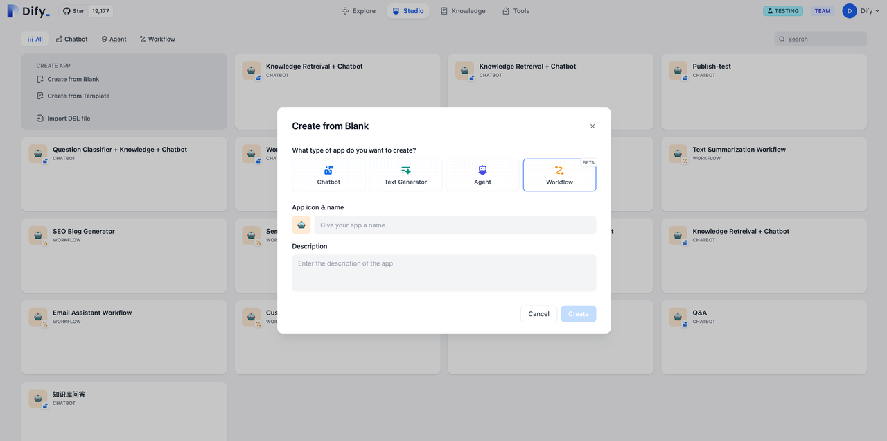 • Basic NodesStart, End, Answer, LLM, Knowledge Retrieval, Applications (coming soon)
